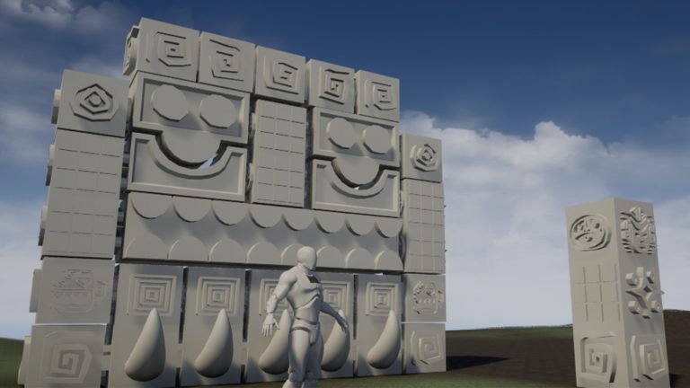 I crafted initial grey box assets as proxy modules, placing them within the scene to establish the temple’s structure. Employing Zbrush’s Alpha tool, I incorporated Anzac symbols, efficiently streamlining the workflow without compromising intricacy. To enrich the authenticity, I dedicated attention to textures and tillable patterns and added moss to replicate the weathered ruins’ appearance.